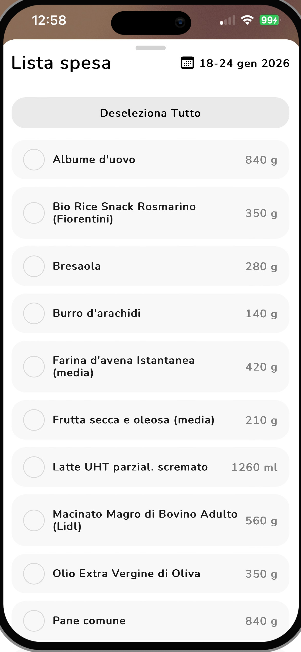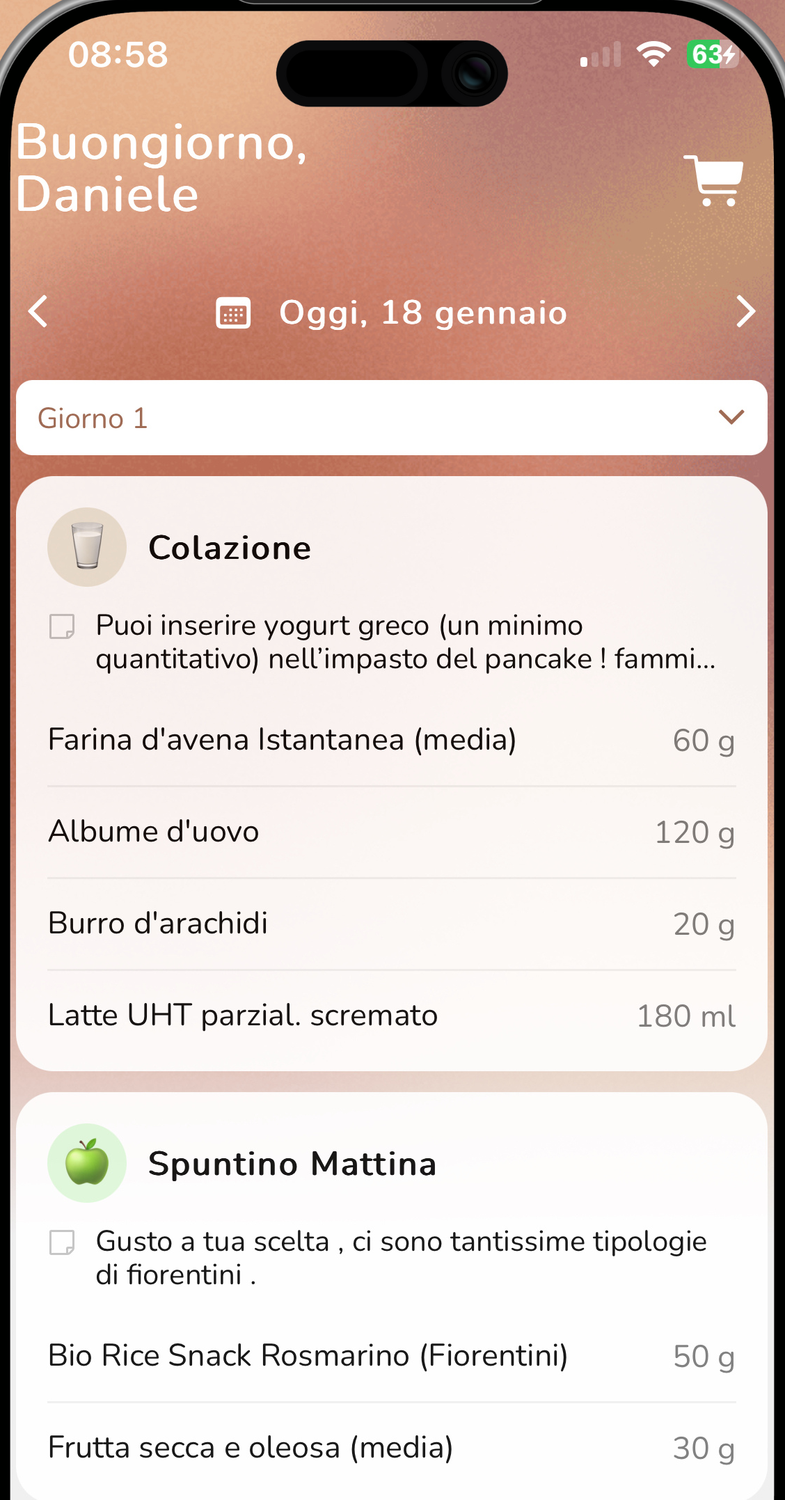 Consulta il tuo piano nutrizionale giorno dopo giorno con un tocco.